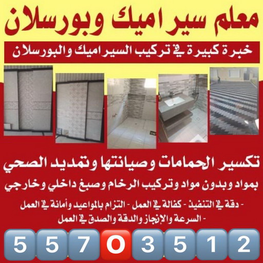 نقدم خدمة تركيب سيراميك تركيب حمامات سيراميك تركيب السيراميك جدران عبر افضل معلم سيراميك ونستخدم افضل أنواع السيراميك المستورد ونقوم في خدمة تجديد السيراميك ونقل السيراميك بأفضل أنواع السيارات مع خدمة تلميع السيراميك وتبديل أي قطعة متضررة مع خدمة تركيب السيراميك للمسابح بأفضل الموديلات الحديثة وباستخدام افضل المواد وبتقنيات عالية.
