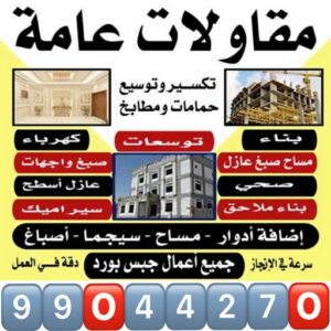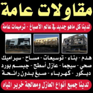 مقاولات عامة – هدم – بناء – مساح – تكسير – سيراميك – مطابخ – حمامامات – توسيعات