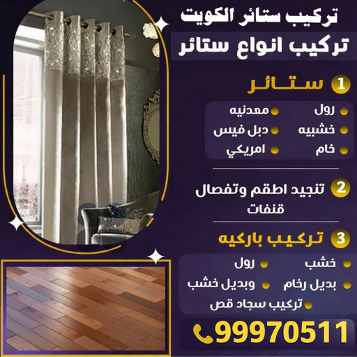 يقدم فني تركيب ستائر الكويت خدمات تفصيل وتركيب جميع انواع الستائر اصبحت متوافرة الان لدينا بارخص الاسعار مع افضل تركيب ستائر في الكويت وخصم يصل الي 30% علي خدماته انتهز الفرصة الان وتواصل معنا يوفر تركيب ستائر الكويت متخصص في تقديم خدمة تفصيل وتركيب وفك وتنظيف الستائر بجميع أنواعها سيدتي العزيزة ستجد معنا حلاً سريعًا وفوريًا لجميع مشاكل الستائر التي تعاني منها والتي تجعلك في حيرة من أمرك نوفر لك جميع متطلبات الستائر بجودة وكفاءة عالية بحيث تشعر معنا بالثقة والمصداقية